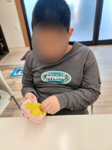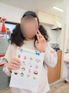 お土産に折り紙のコマをもらってハイポーズ📸