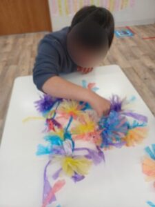 お花紙を開いてお花を作って、