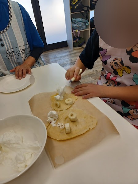 好きなトッピングをして…🍌🍫💞