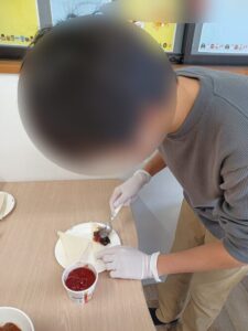 こちらのテーブルのチームは、今度は生クリームを泡立てます。