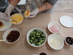 具材が揃ったので、自分の好きなものを挟んでいきます。