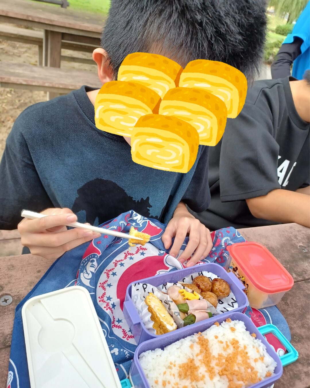 前日まで晴れるか心配していましたが、お天気にも恵まれ晴れ空の下でお弁当を食べました🍙🍙🍙