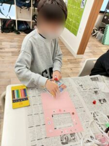 どんな写真立てにしようかな?と、みんなで考えていますよー😆