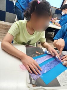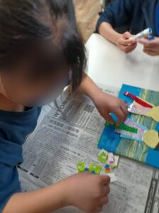 お絵描きをしたい子は、色鉛筆で模様などを描いていきます🖊