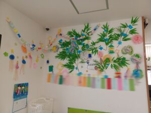 伊勢崎2の壁も、子どもたちの工作を飾って七夕仕様になっています