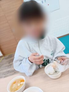 5月6日に食育活動でおにぎり作りを行いました。鮭、わかめ、チャーハンの味の中から自分で好きな味を選んで作りました。自分たちで握ったおにぎりは格別に美味しかったようです★
