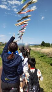 5月3日に赤堀のせせらぎ公園に行ってきました。子どもの日が近く、公園には沢山のこいのぼりが元気に泳いでいました!公園の土手をお散歩し、橋を渡ると鉄棒もあり、遊具で遊ぶこともできて元気に行ってくることができました。