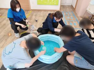 元気いっぱいの夏休み、気温が高い日は室内でいろいろな遊びをします📢