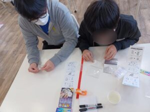 4種類の実験キットから好きなものを選んで、職員と一緒に説明書を読みながら取り組みました!