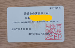 倒れている人を発見した時の対応の仕方、救命に関する一連の流れを学びました。