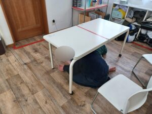 すみやかに机の下に身を隠し、職員の指示に従って避難してくれました。