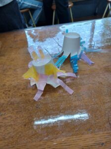 缶バッチをつくったり、空飛ぶUFO⁉🛸をつくりました。
