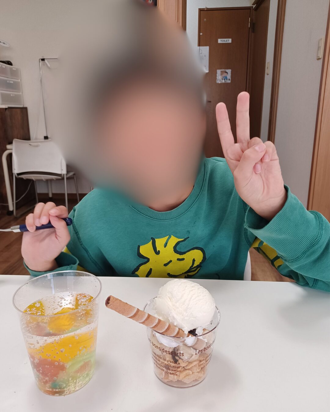 パフェ🍨とサイダー🥤を添えて、優雅な午後のひと時を楽しみました。初めて食べる食材もあるけど、自分たちで作ったこともあってより美味しく感じるね!