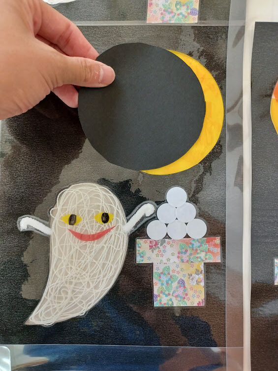 丸く切った黒い画用紙をお月様に重ねると・・・