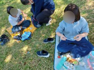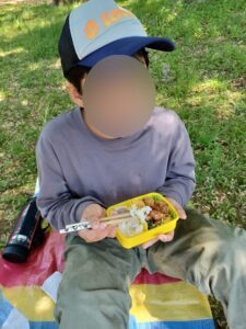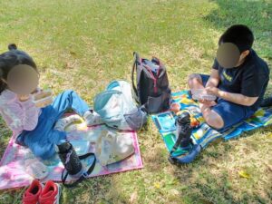 公園に着いたら、まずは日陰でお弁当🎶🍱
