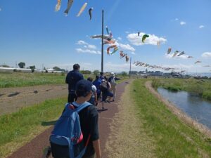 粕川の上を雄大に泳ぐこいのぼりを見ながら、楽しくお散歩できました💯