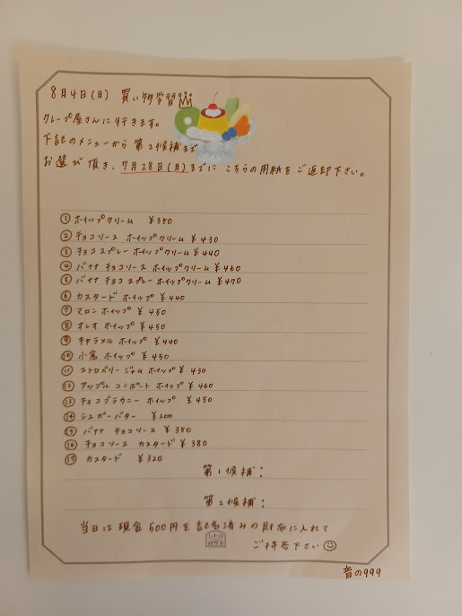 さて、本日は夏休みのイベントから、【クレープ屋さんでお買い物学習💰】をした様子をお届けします😄✨