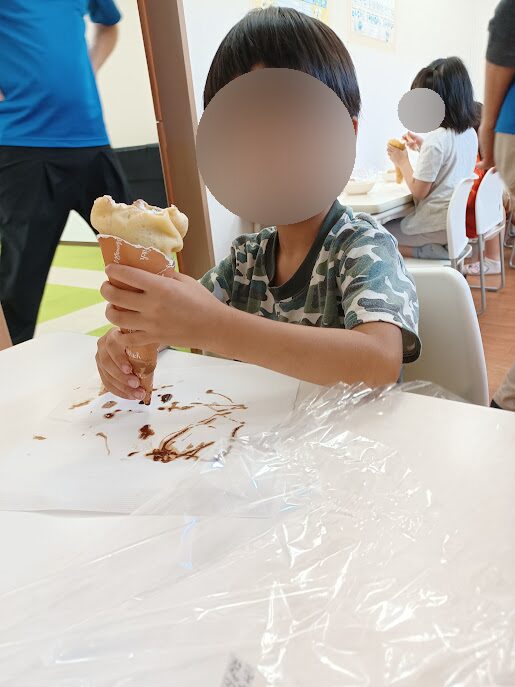 この日初めてクレープを食べた児童もいましたが、とっても美味しそうに食べており安心しました😄🎵