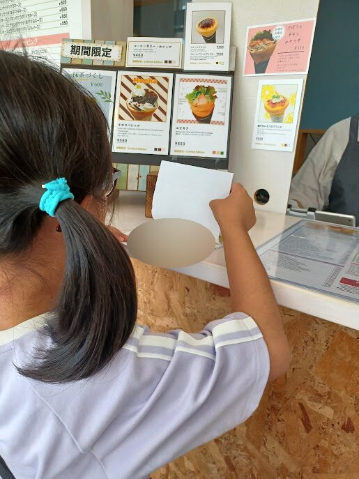 お店の方にメニューを伝える際は、少しだけ緊張した様子の子ども達でしたが・・・無事注文をすることができました😄