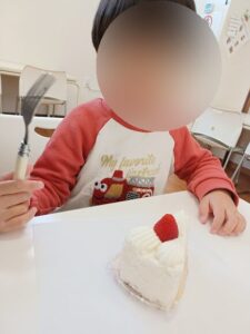 ケーキは午後のおやつの時間にみんなで食べました
