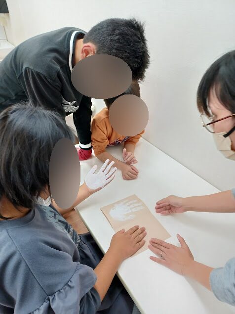 グループ全員の手形を取ると・・・子ども達が嬉しそうにポーズをとってくれました😂💓