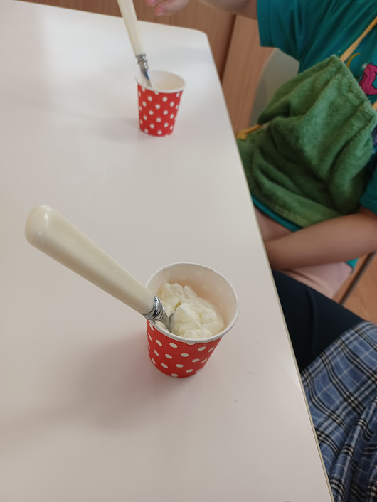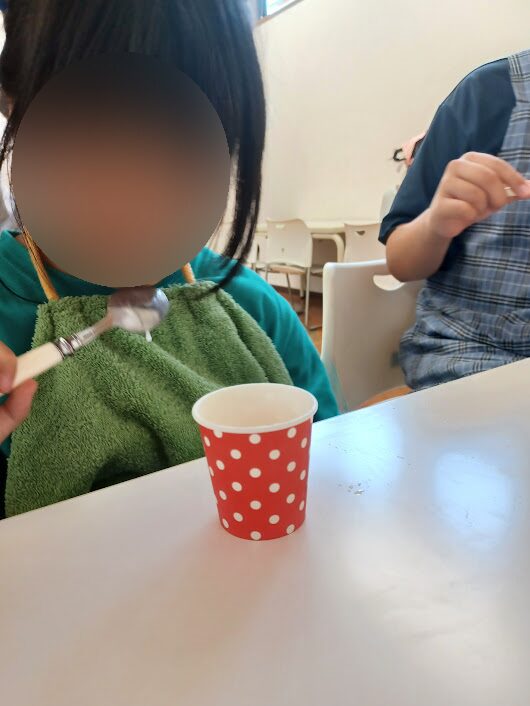 子ども達の表情をお見せすることが出来ず残念ですが😌💦皆、ニコニコな笑顔で嬉しそうにアイスを食べていました🥄✨