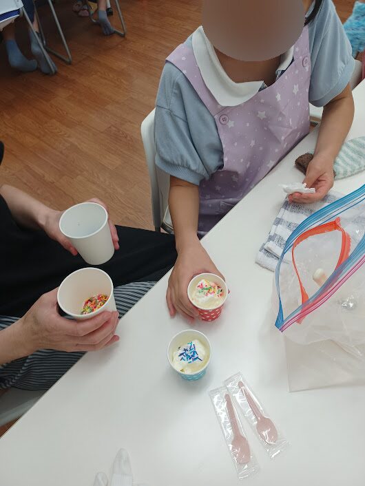 後半は少し職員もお手伝いして、無事みんなアイスを完成させることができました😄💗