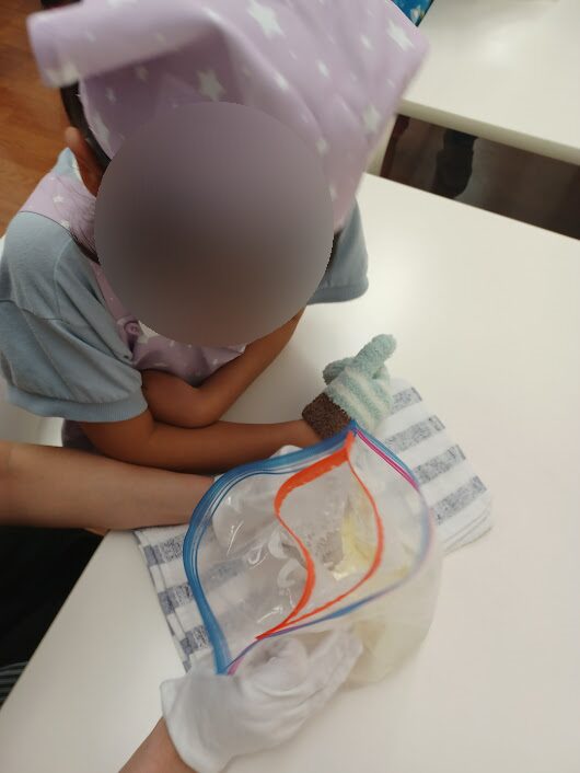 子ども達はお母さん、お父さんと一緒に活動を楽しんだり、お友達と協力したりしてアイス作りを行いました😌