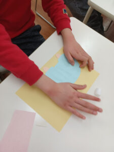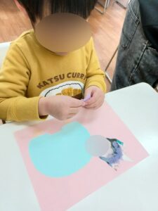 初めは画用紙やお花紙など、自分の好きな材料を選ぶところから始めます🤗