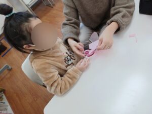 こちらは、お母様と一緒にハサミを使った活動に挑戦中です💡