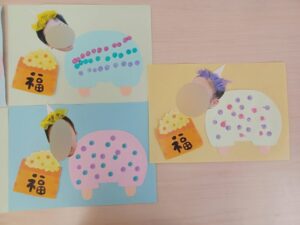 今回の制作では、子ども達の写真を使いながら、とっても可愛い鬼のパンツ👖を作りました🎵