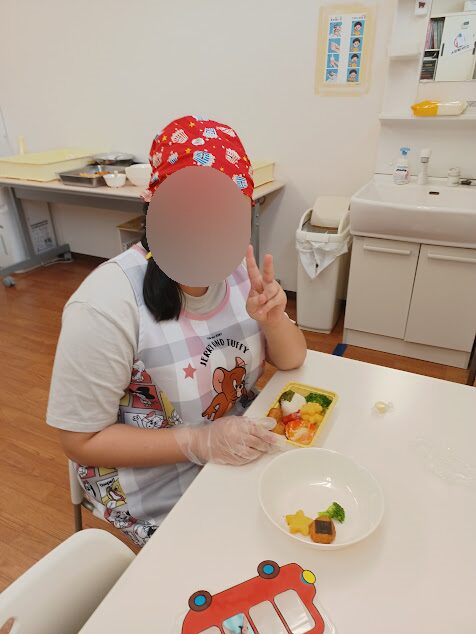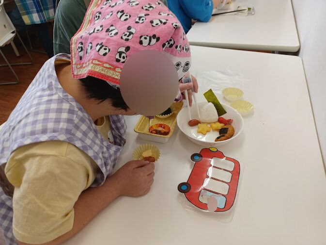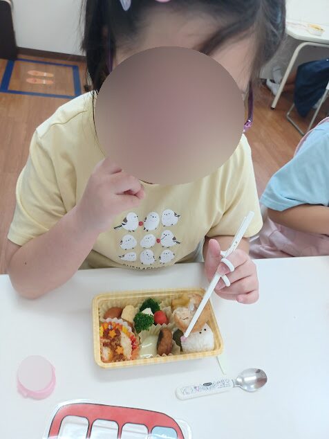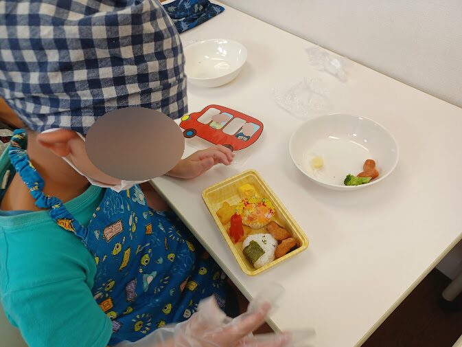 「いただきます👏」の時間にはお友だちと、自分の作ったランチボックスを見比べて会話を楽しむ様子があり、とても微笑ましかったです🥰