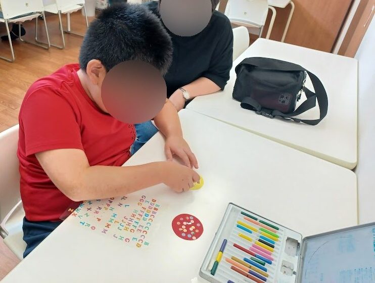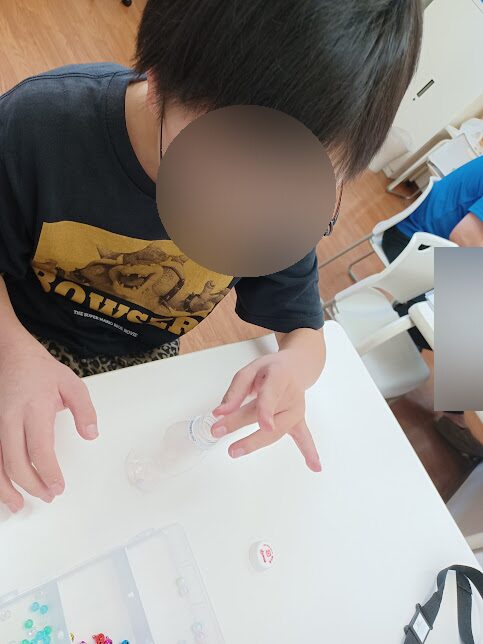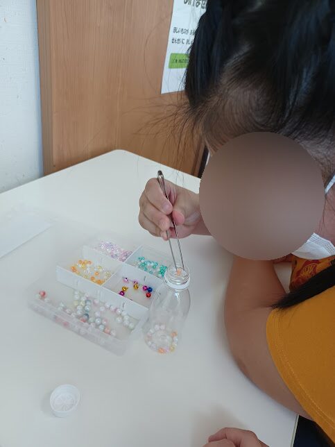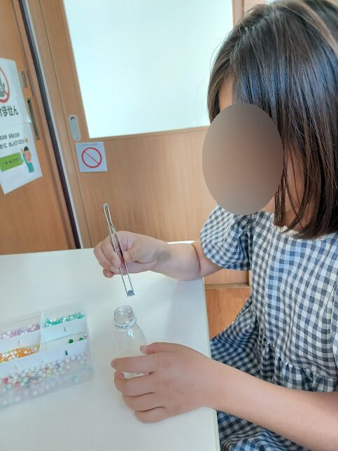 高学年、中学生のお兄さん・お姉さんは、ピンセットで入れることに挑戦!😯日頃の微細活動で練習している成果が出ており、器用にビーズを掴めていました🥰