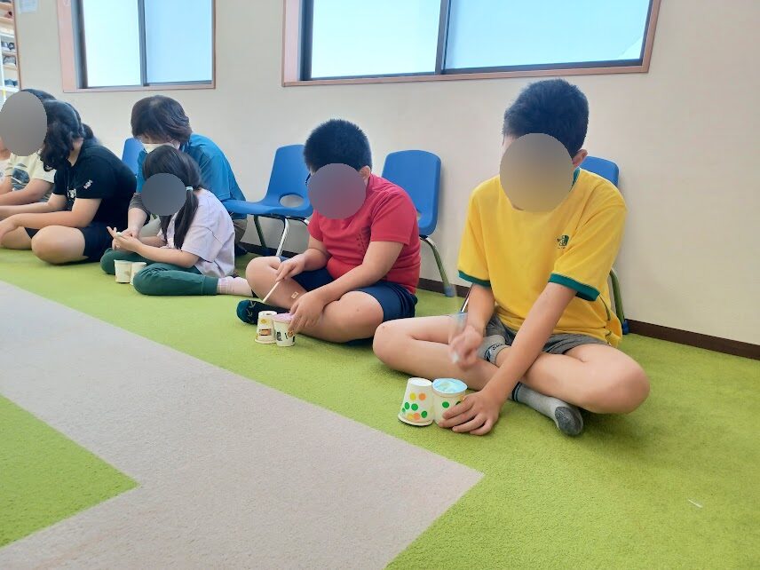 ピンセットが難しい児童は、数を自分で数えながら入れられていました🎵